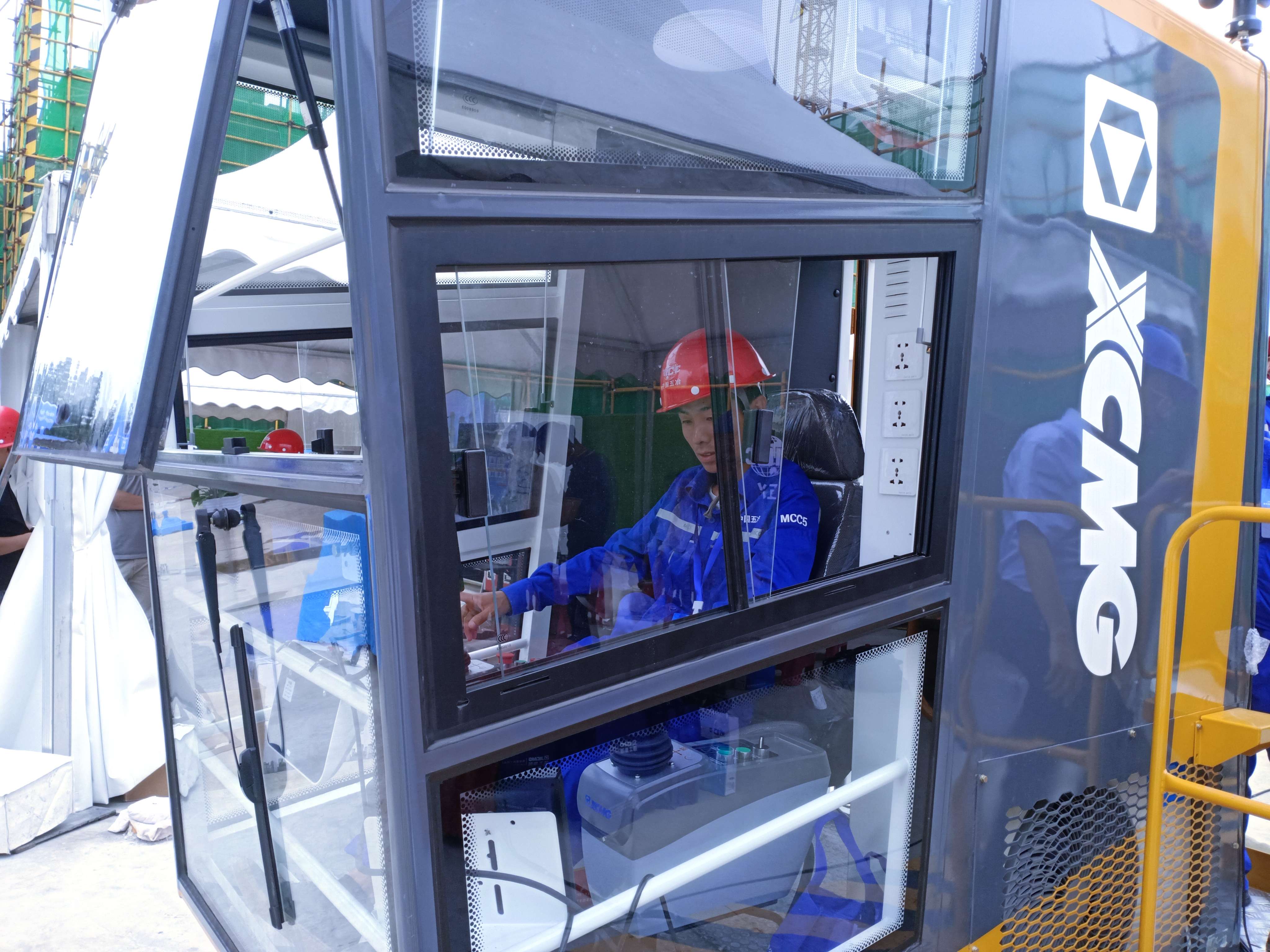 其中塔机操作室,更是吸引了众多人员前来体验,舒适开阔配备有全方位安全监控系统的操作室,让之前未曾接触过塔机操作的人们了解到了不少的新鲜事物。其中一位参会的文职人员说道,“在没看到这个操作室和其他安全防护装置的时候,我以为塔吊吊升物品是全靠司机技术,更是觉得塔吊司机每天上下塔吊是在玩极限运动。”