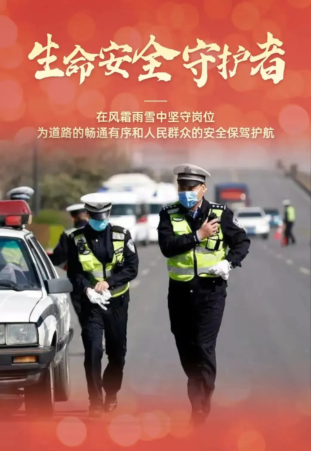 致敬交通警察,头顶警徽,肩扛责任,栉风沐雨,兢兢业业,坚守道路一线,为百姓护航。
