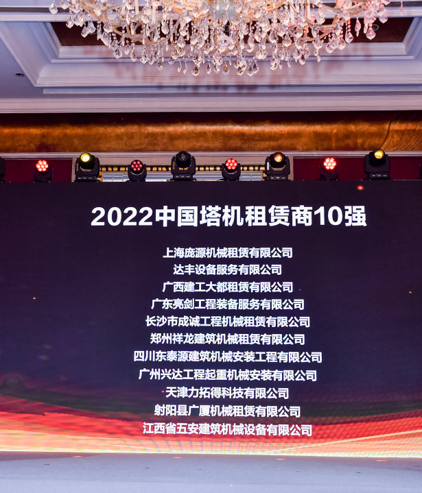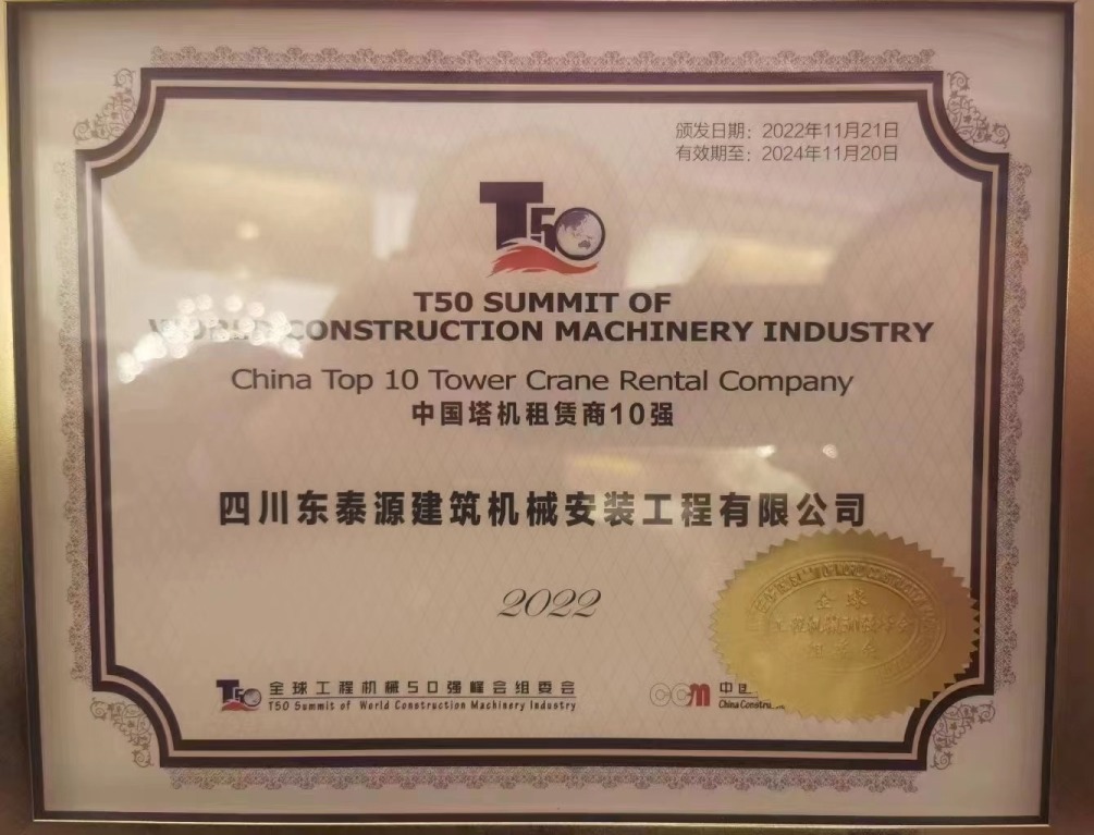 【喜讯】四川东泰源租赁荣获2022中国塔机租赁商10强